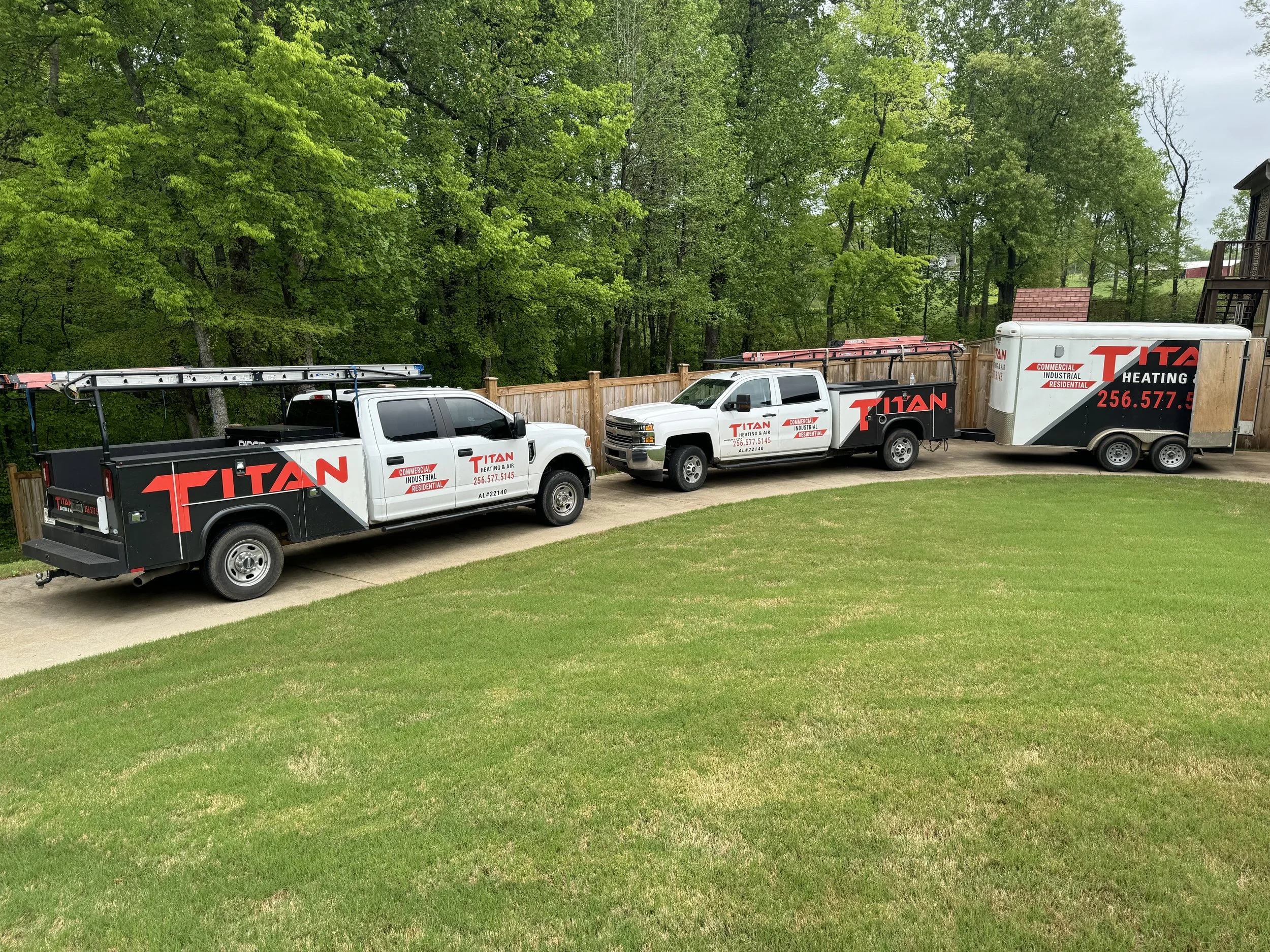 Titan Heating and Air is a family-owned and operated full-service heating and air conditioning company focused on serving their friends and neighbors in the Shoals area. They have a full-scale marketing strategy including flyers, billboards, and of course, their truck fleet.